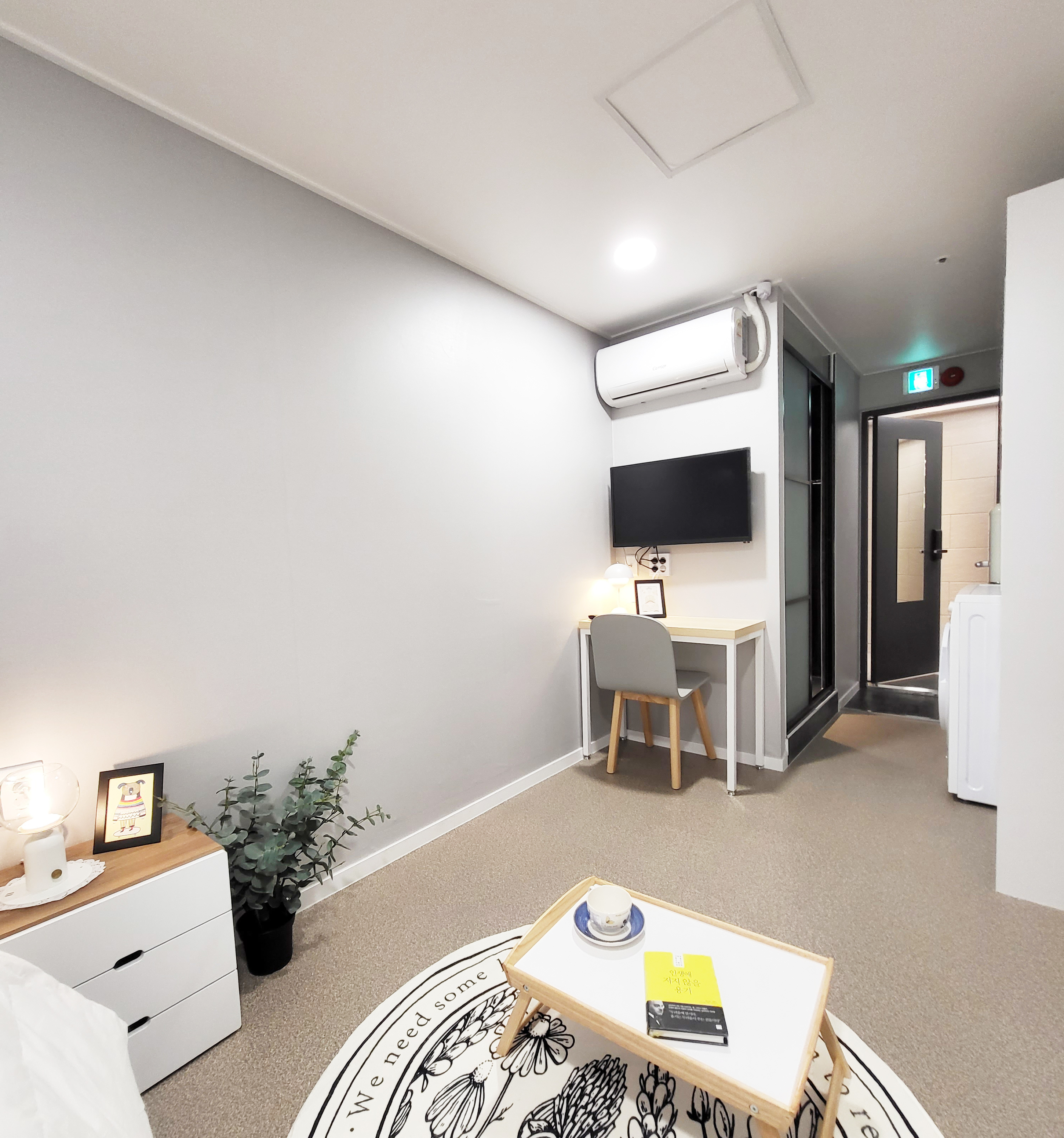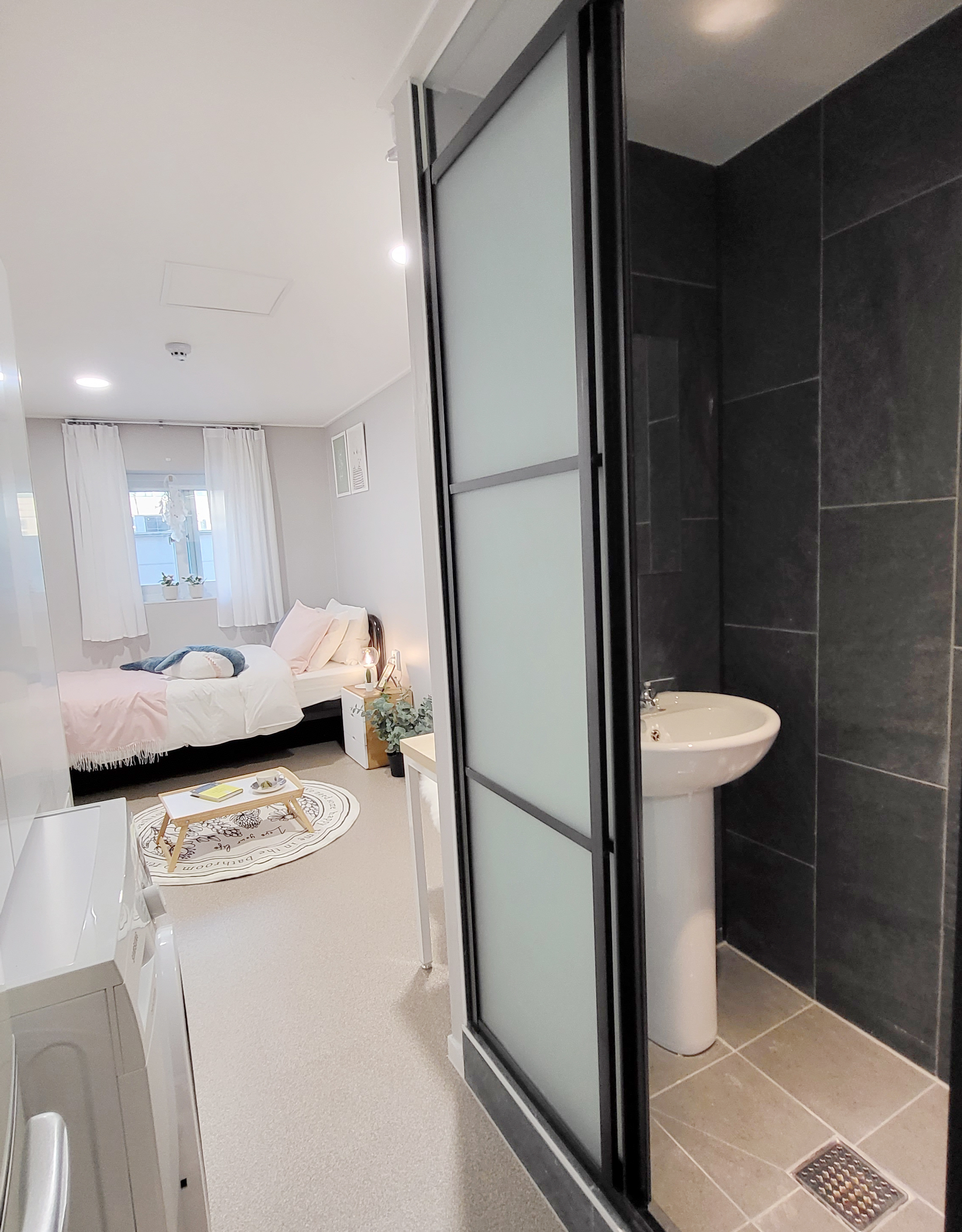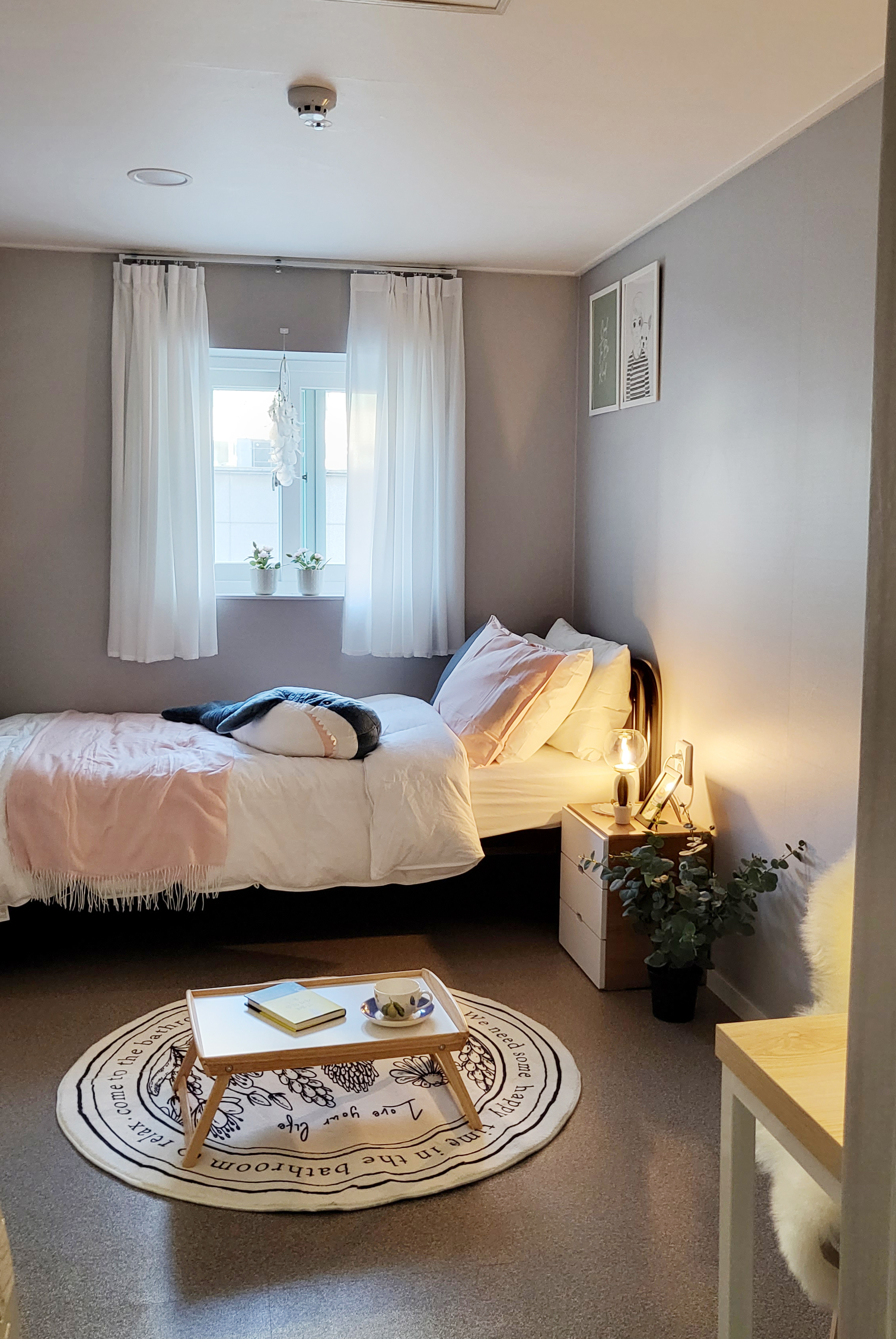 건물 내외부 샷시 교체로 모든방이 큰 이중창이 있어 쾌적함을 자랑합니다.답답한 없는 큰 방 사이즈, 편안한 잠자리를 위한 큰 침대와 커튼, 수면 스탠드까지 준비한 안락한 공간을 선물합니다.