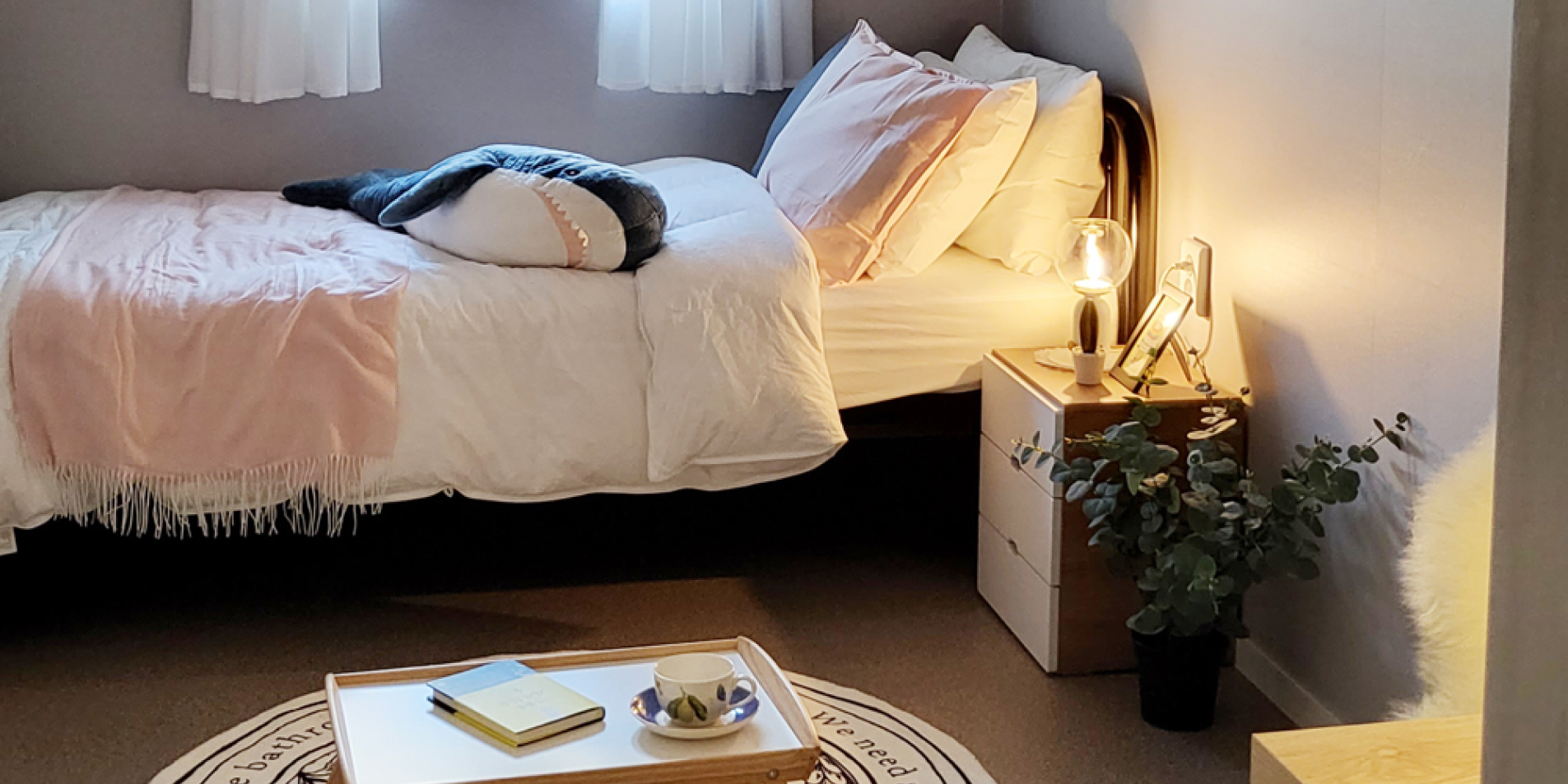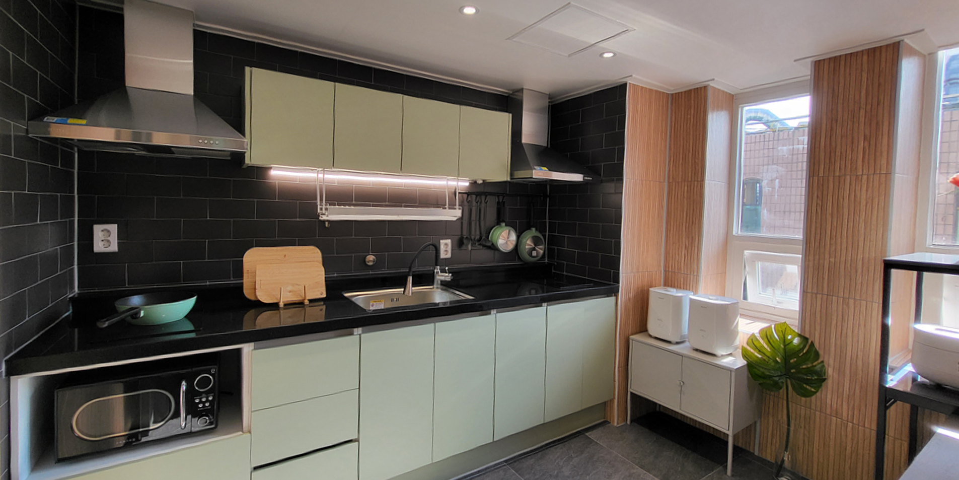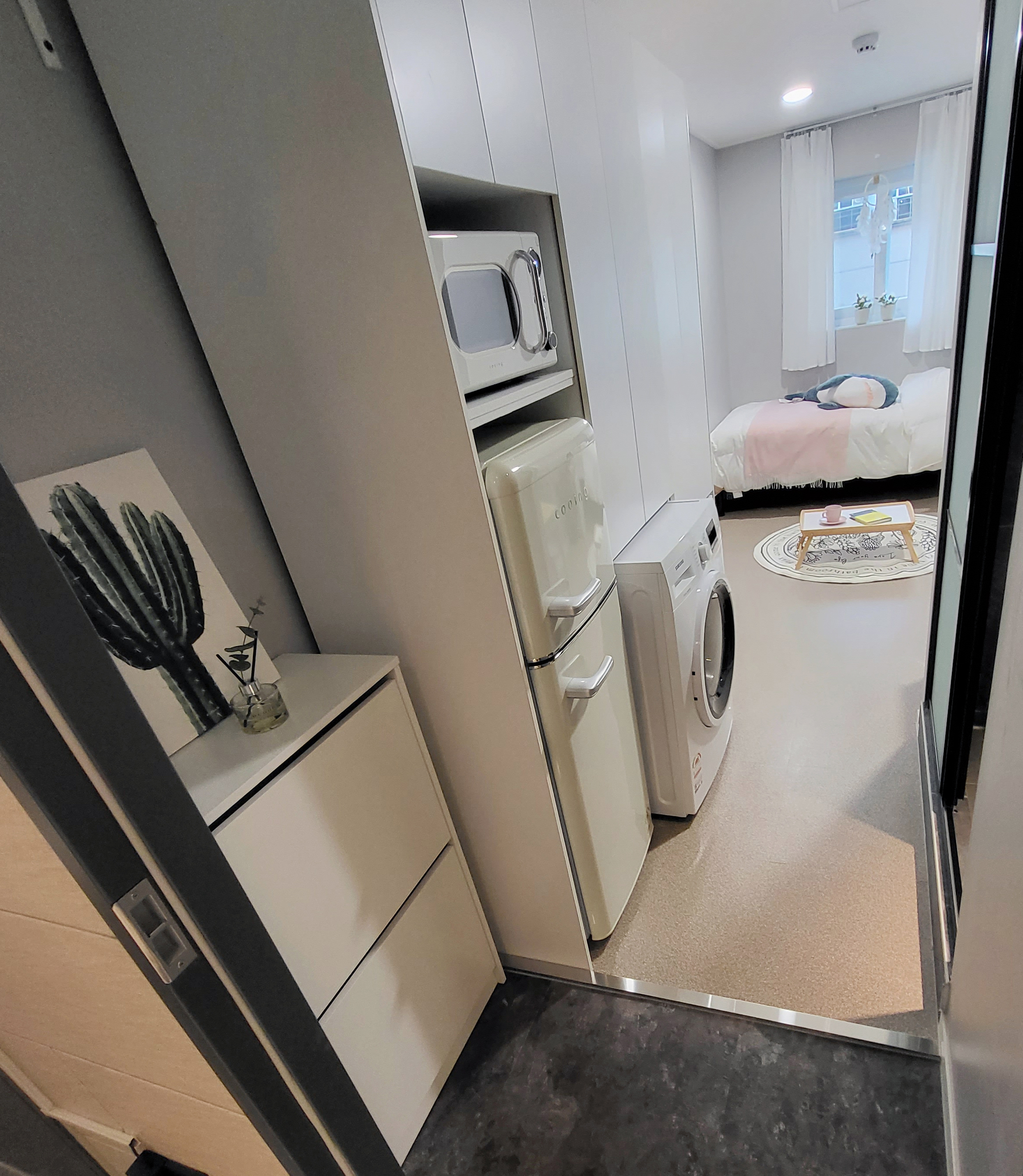 건물 내외부 샷시 교체로 모든방이 큰 이중창이 있어 쾌적함을 자랑합니다.답답한 없는 큰 방 사이즈, 편안한 잠자리를 위한 큰 침대와 커튼, 수면 스탠드까지 준비한 안락한 공간을 선물합니다.
